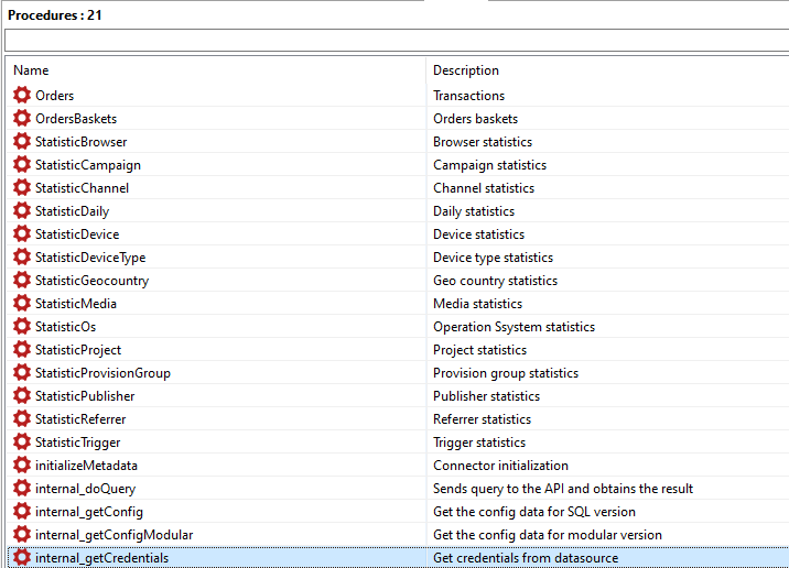 TheEasy Marketing API connector introduces a new virtual schema easy_m that contains the following stored procedures:
