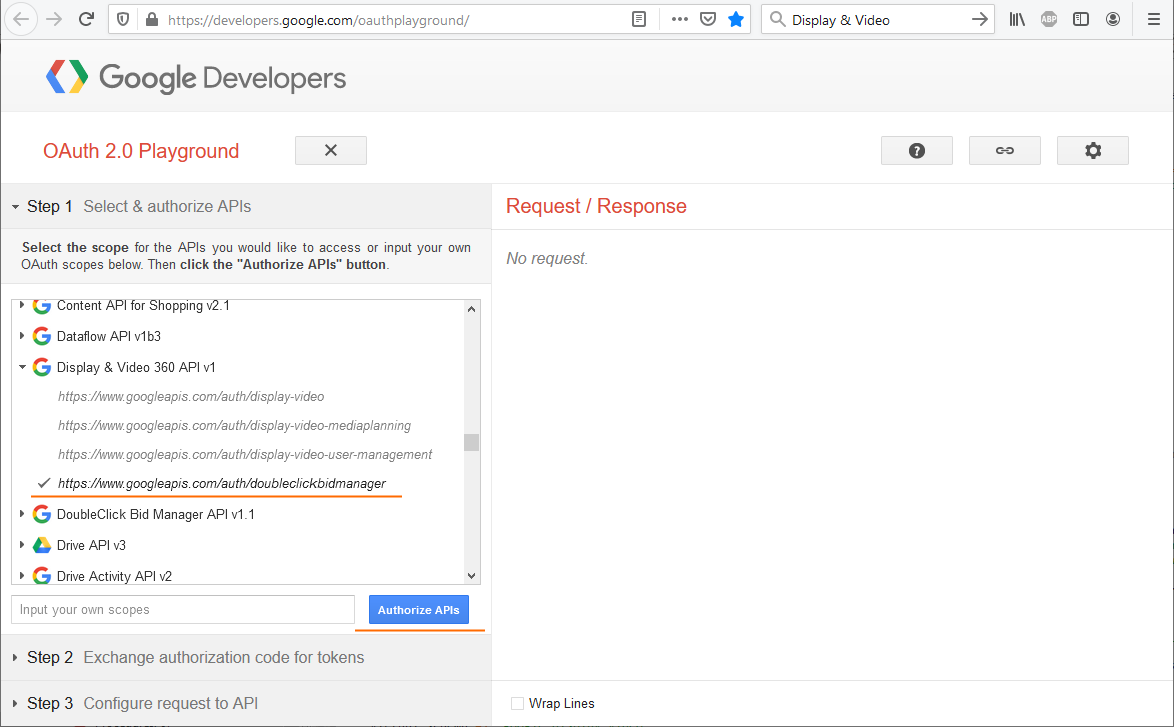 | https://www.googleapis.com/auth/doubleclickbidmanager | View and manage your reports in DoubleClick Bid Manager |