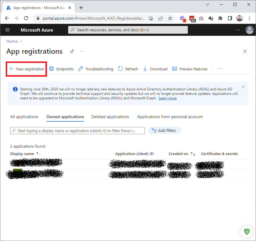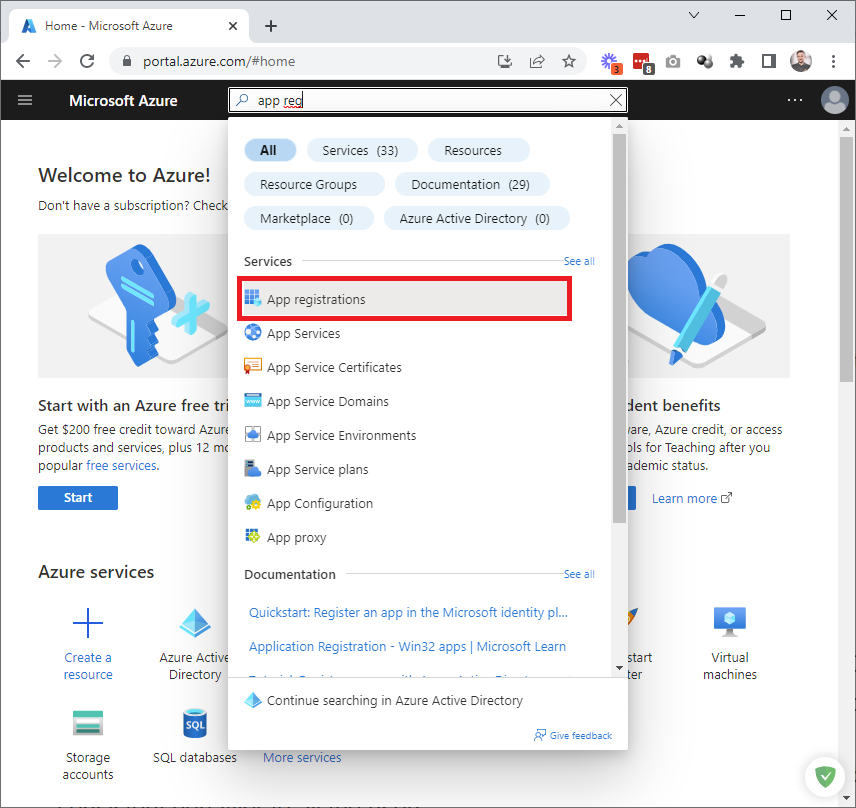 Select App registrations: