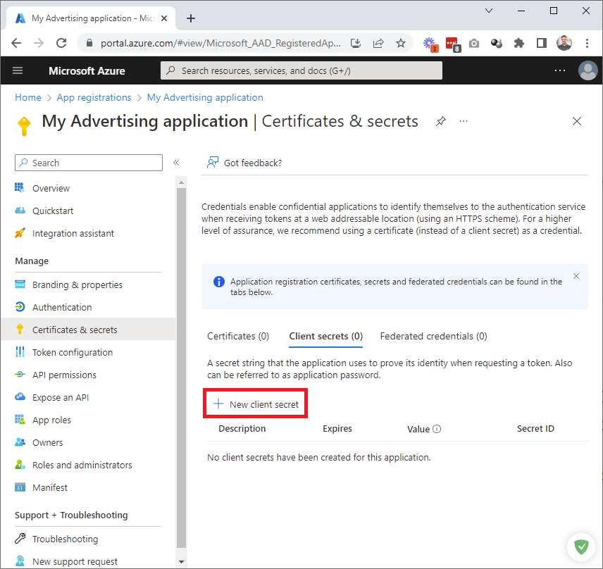 Click New client secret:
