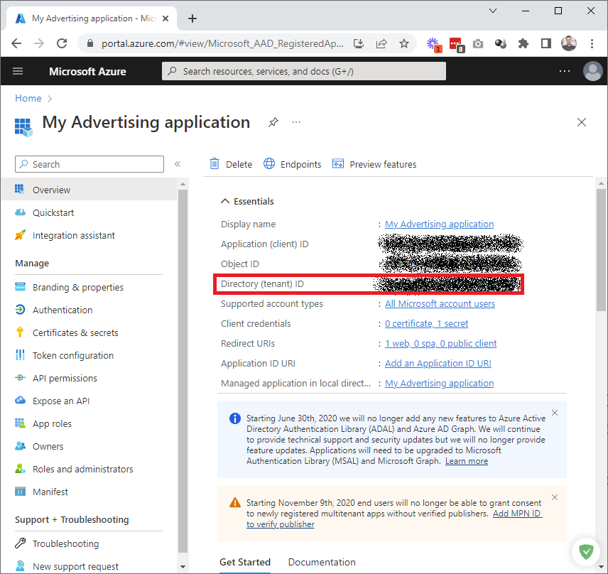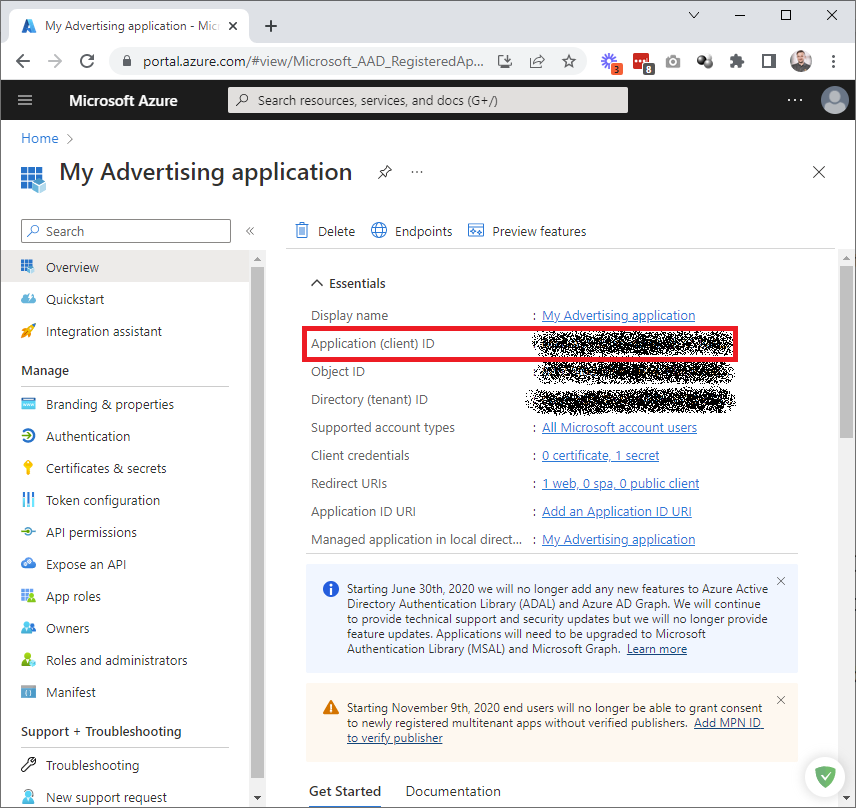 Save the Application (client) ID value, as we will need it for further steps.