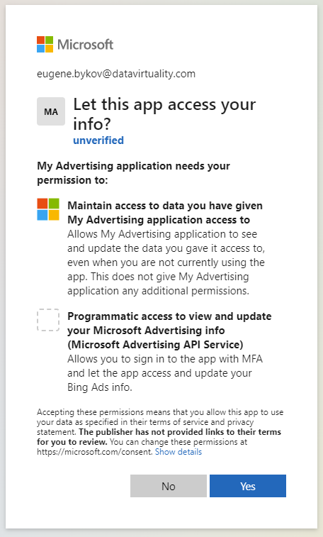 Microsoft Advertising User Authentication