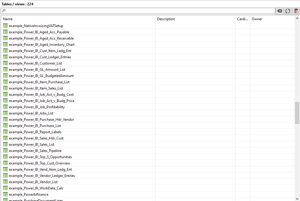 In addition to these public API procedures, there is the dynamics_bc_examples virtual schema that shows an exemplary usage of the public API: