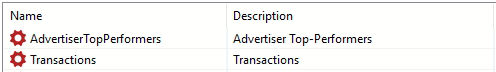 The Webgains API connector introduces a new virtual schema webgains that contains the following stored procedures: