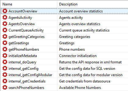 The Zendesk Talk API connector introduces a new virtual schema zendesktalk that contains the following stored procedures:
