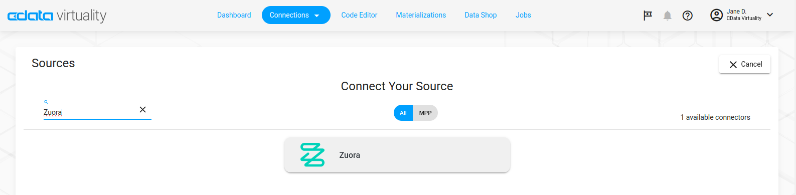 Follow these steps to connect Zuora to your CData Virtuality account: