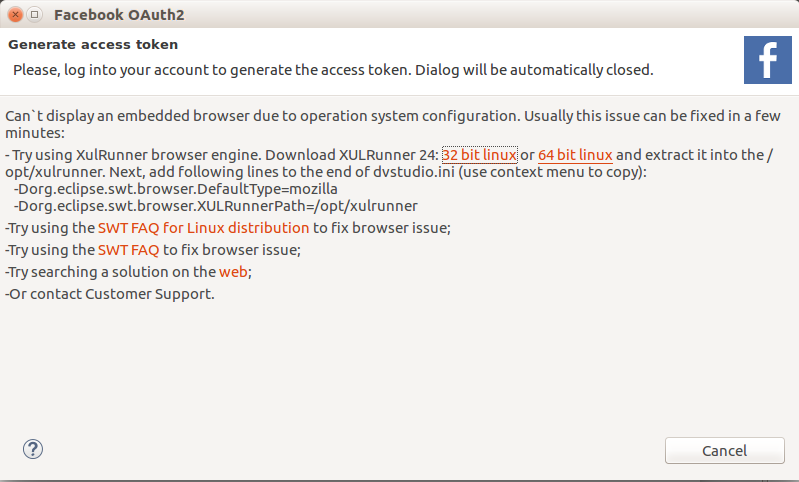 CODE... -Dorg.eclipse.swt.browser.DefaultType=mozilla -Dorg.eclipse.swt.browser.XULRunnerPath=<PATH to XUL>- Now you can execute dvstudio/dv_studio and run the Data Virtuality Studio.