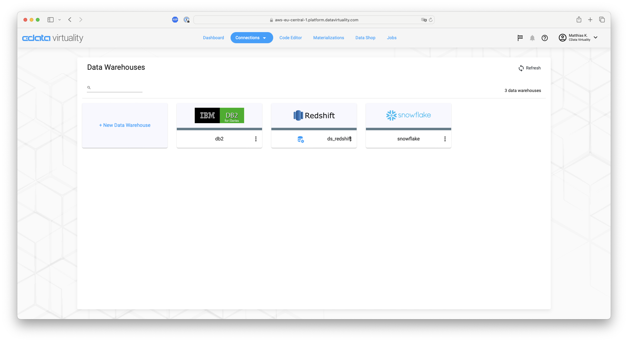 In the CData Virtuality Web UI, click on the Data Warehouses tab:
