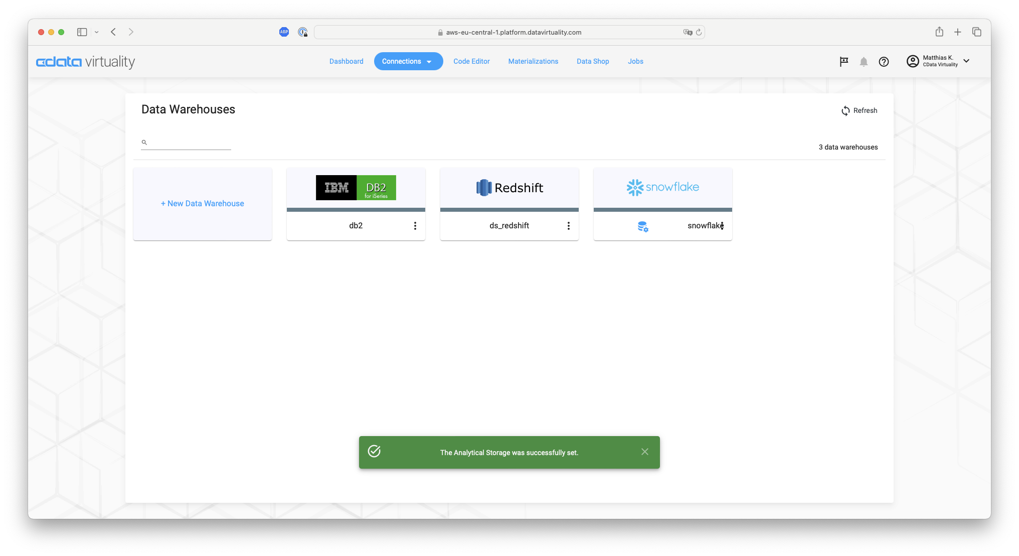 Configuring Analytical Storage (CData Virtuality Web UI and SaaS)