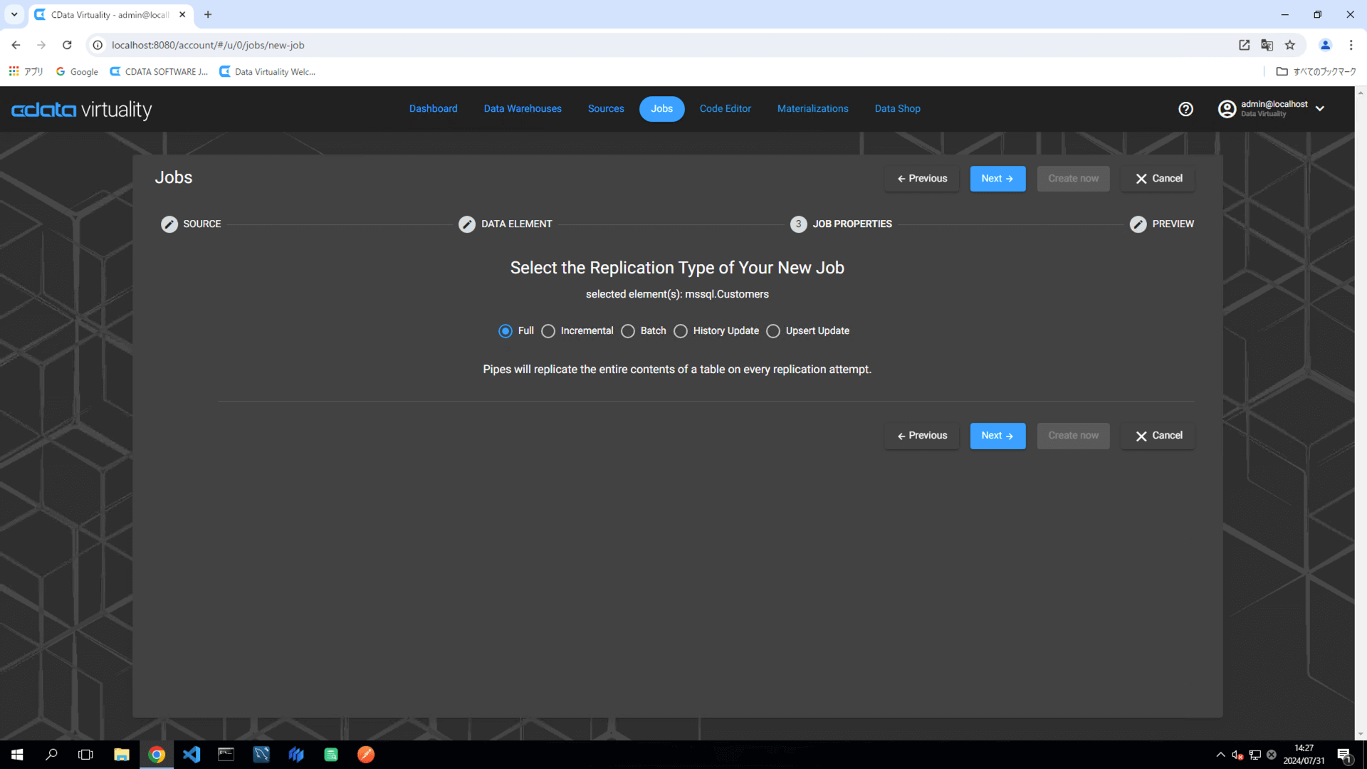 On the Jobs screen, the JOB TYPE will appear as copyOverSourceTable, which is synonymous with Copy Over or Full replication:
