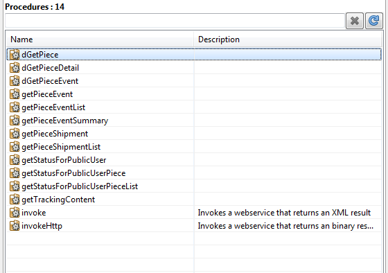 In addition to the public API procedures, the DHL Track and Trace data source exposes some internal procedures that are used by the public API. The output order of internal procedures is alphabetical, and the content complies with their purpose.