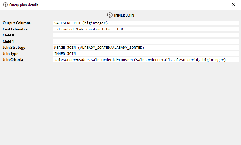 A merge join is considered one of the fastest methods for joining; it requires both inputs to be sorted. The visualization below shows how the comparison is made. More information can be found here.
