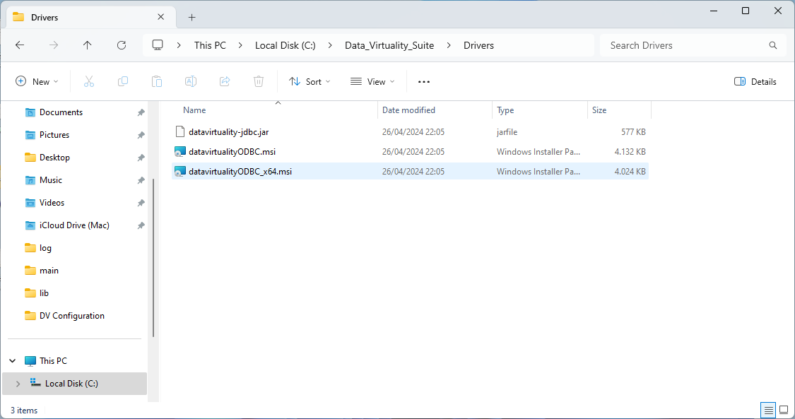 The JDBC Driver is stored in the Drivers folder of the CData_Virtuality_Suite installation folder. The file name is datavirtuality-jdbc.jar: