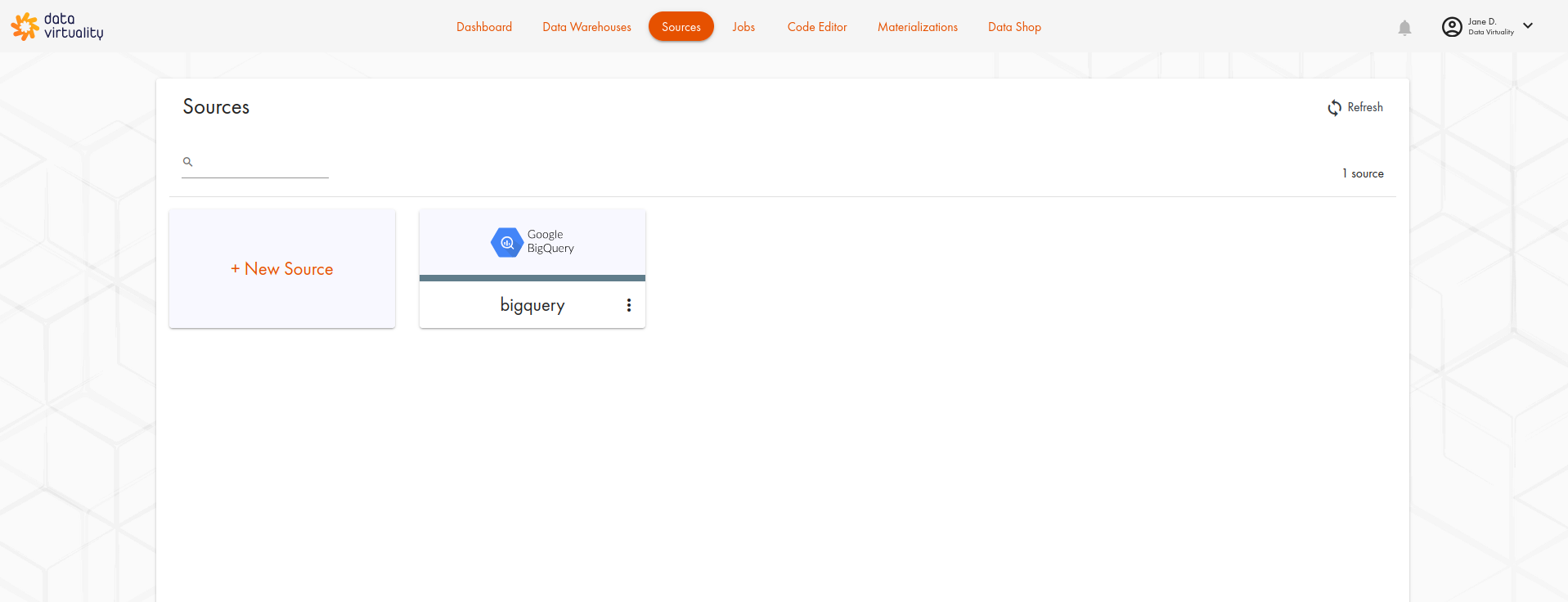 The Sources page gives an overview of all sources you have added in your instance and the total number of them, as well as the possibility to view information related to the source(s) you have already connected.