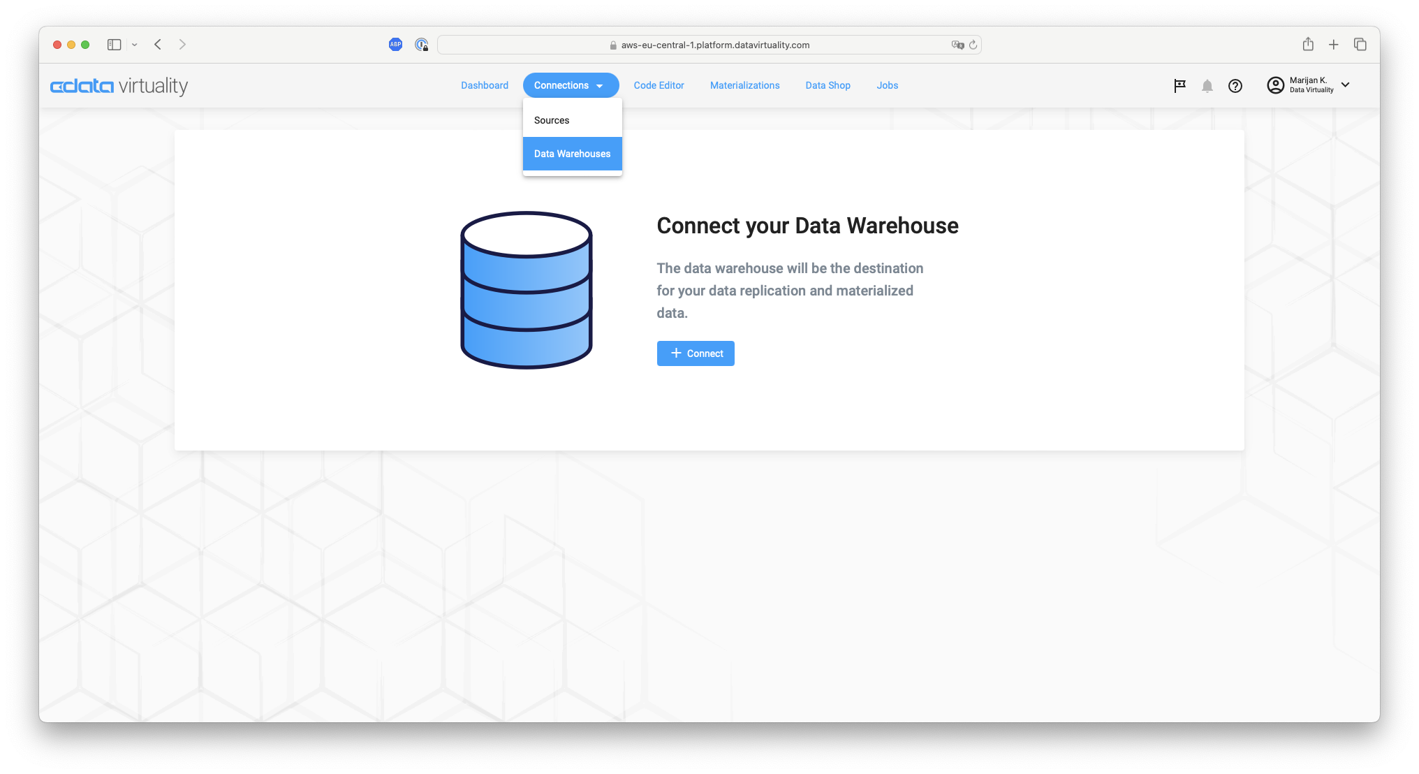 In the CData Virtuality Web UI, click on the Data Warehouses tab: