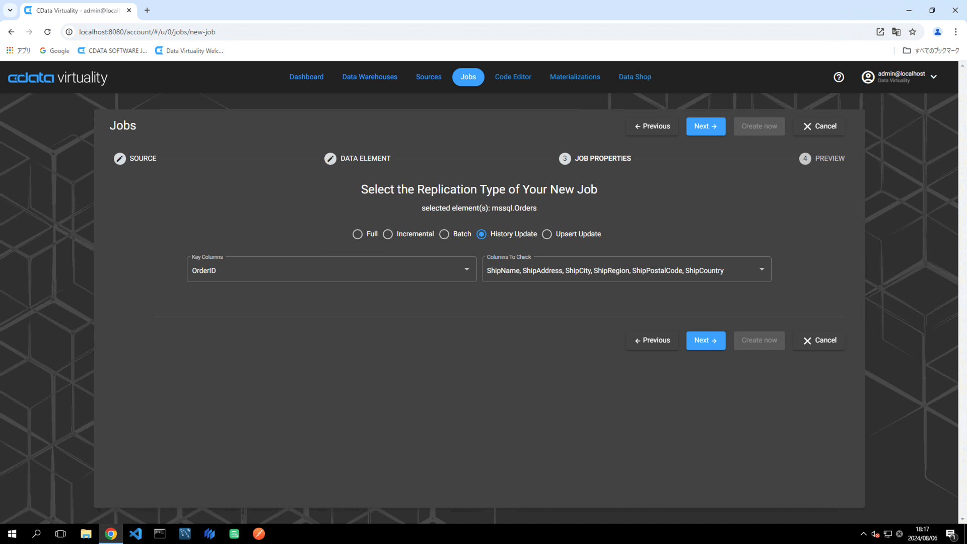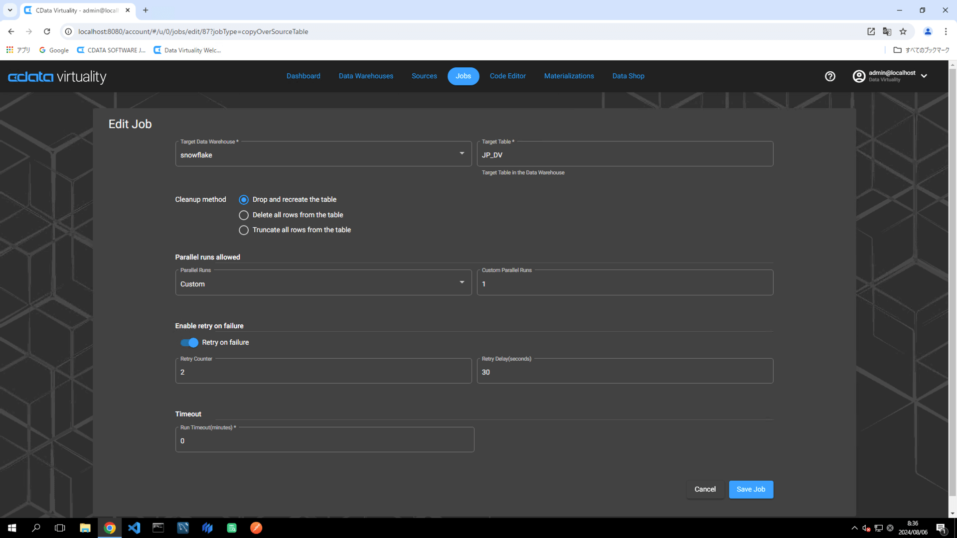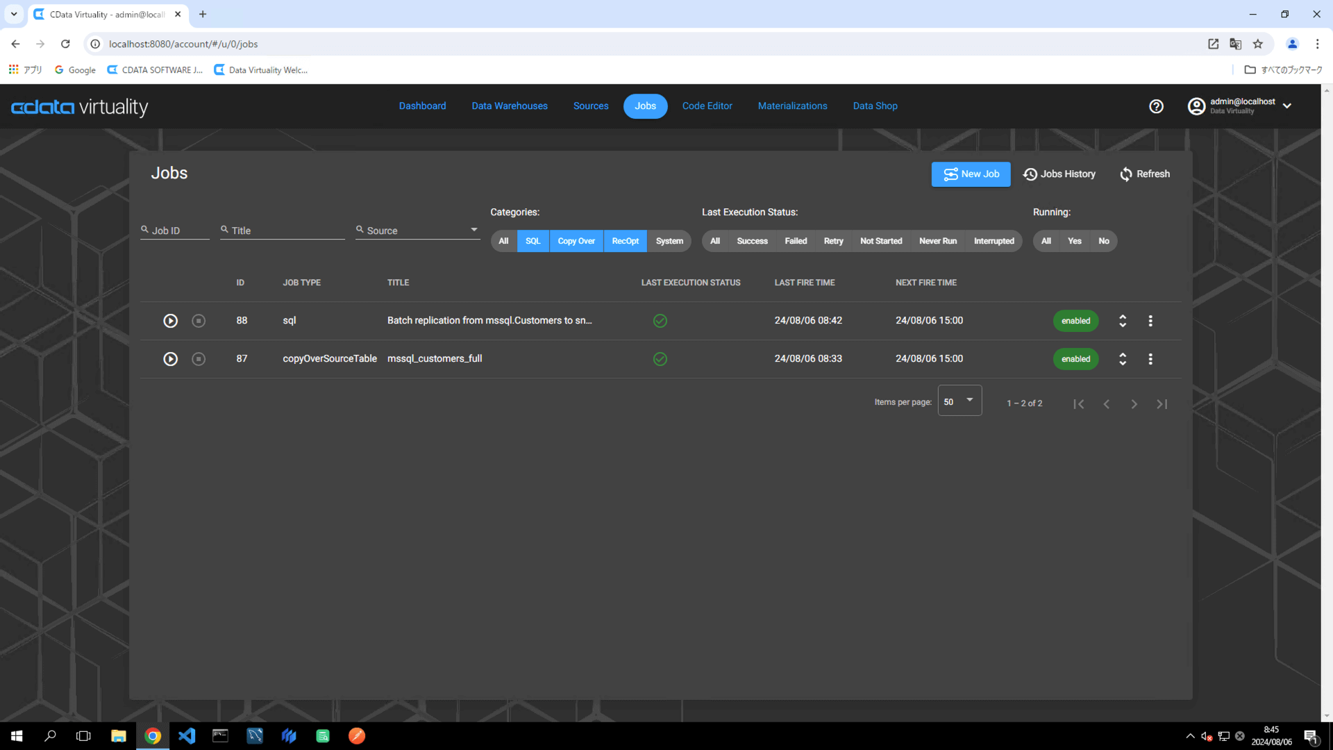 On the Jobs screen, the JOB TYPE will appear as copyOverSourceTable, which is synonymous with Copy Over or Full replication: