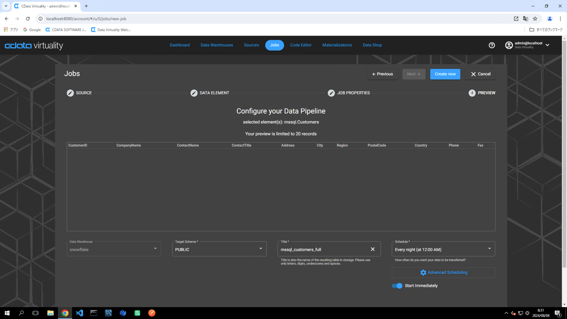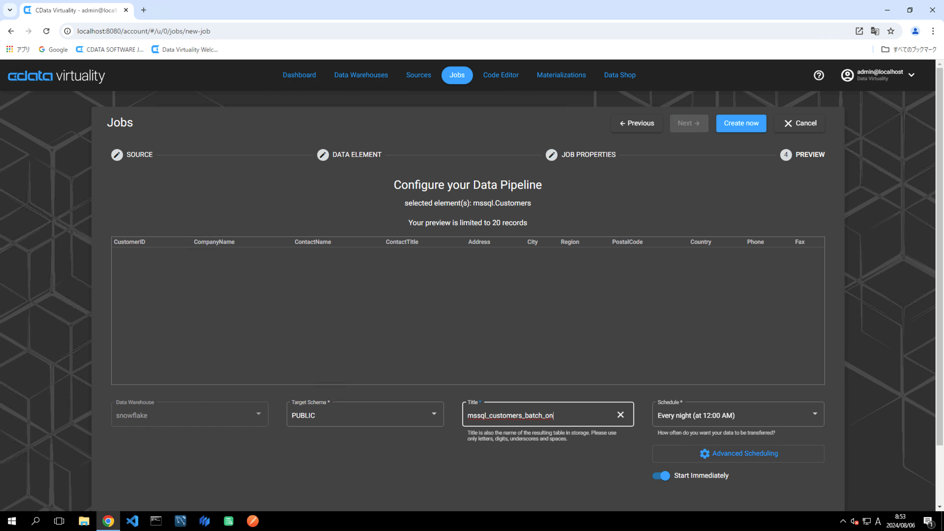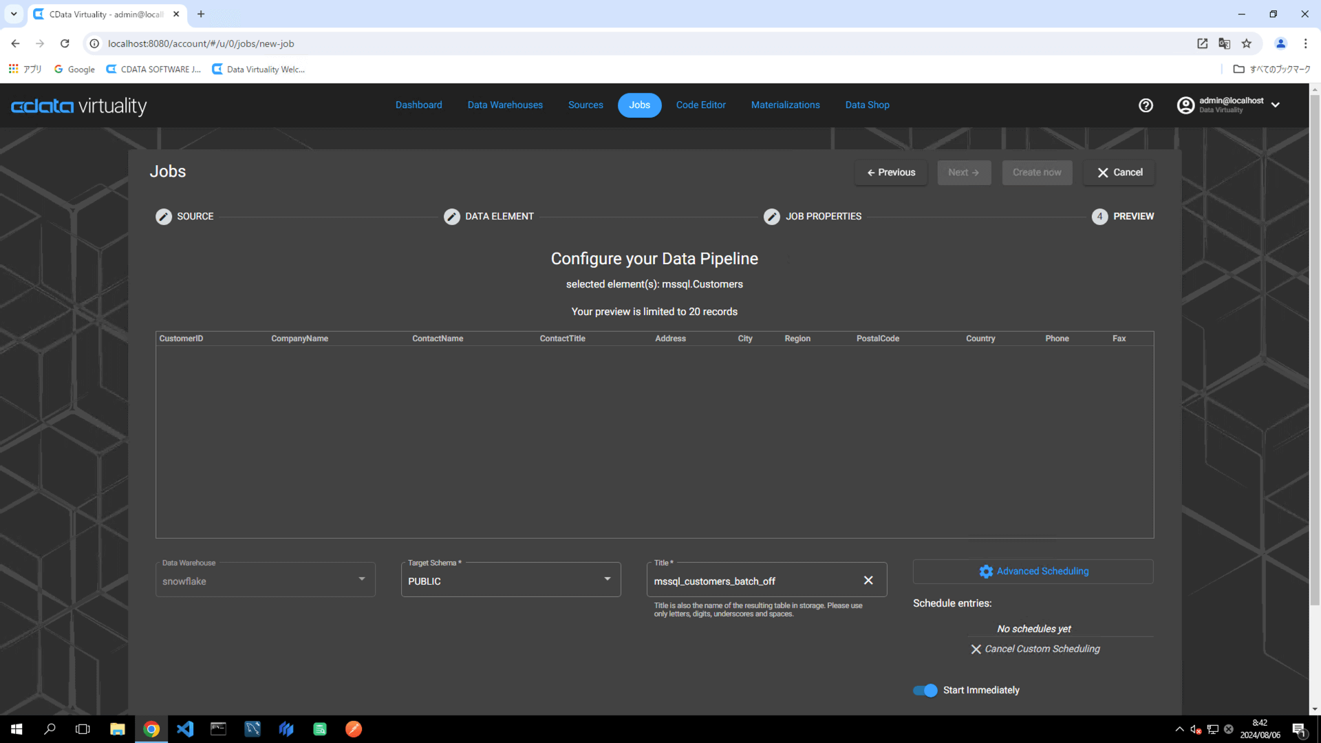 mssql_customers_full.Schedule: Set the desired execution schedule.