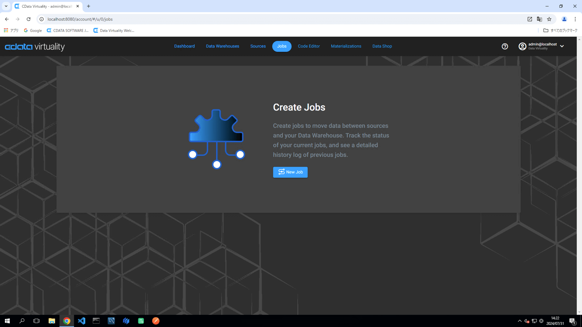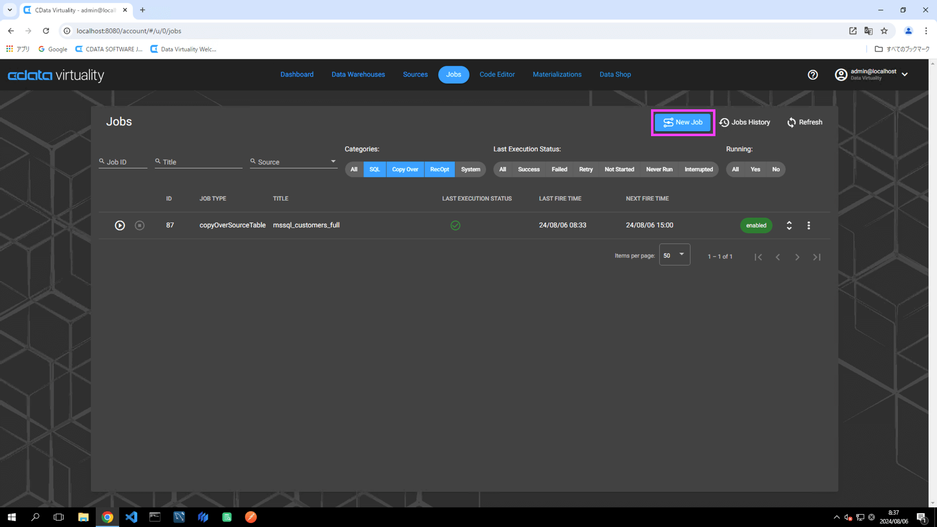 Open Jobs and click the New Job button: