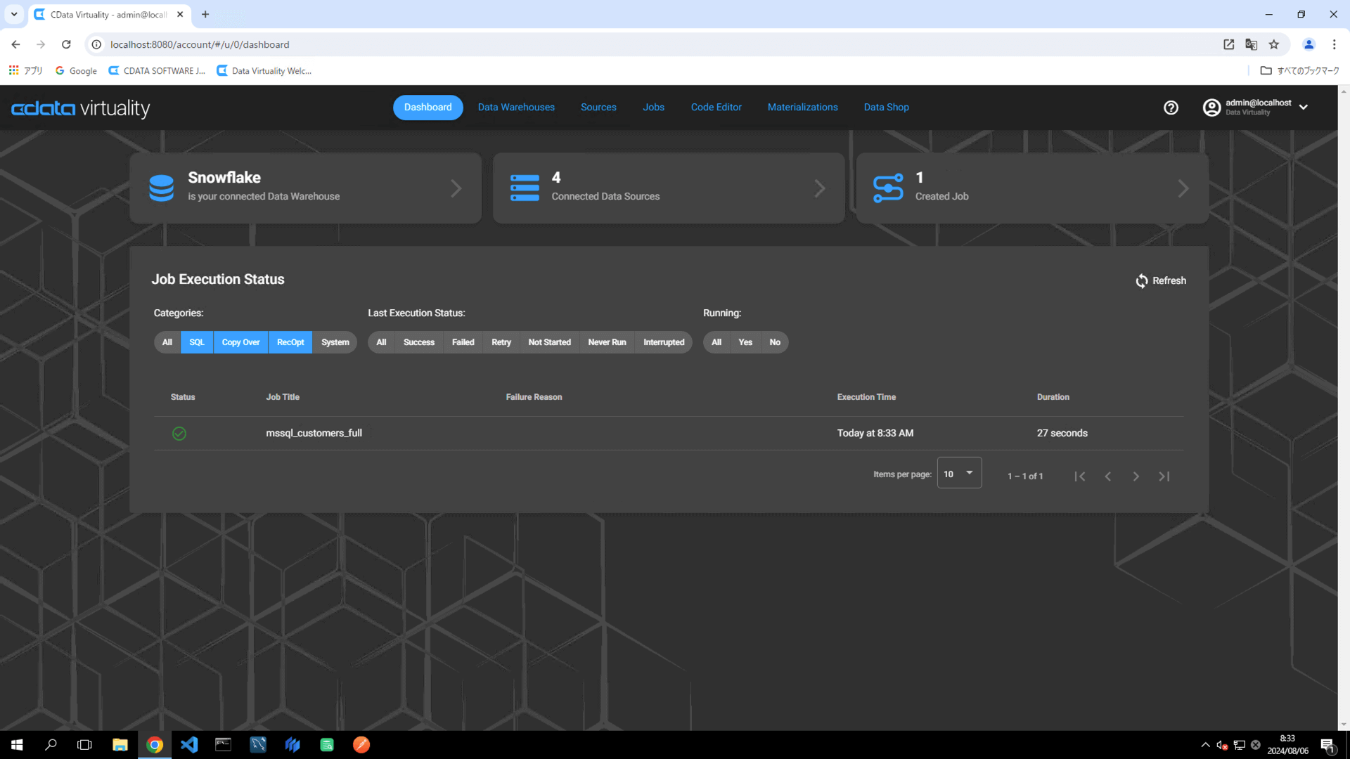 To test that the data is stored in the data warehouse (e.g., Snowflake) correctly, re-run the same job. If the job is executed with Use identity field... toggled on, duplicate records will be registered because all records are added to the existing table each time the job is executed.