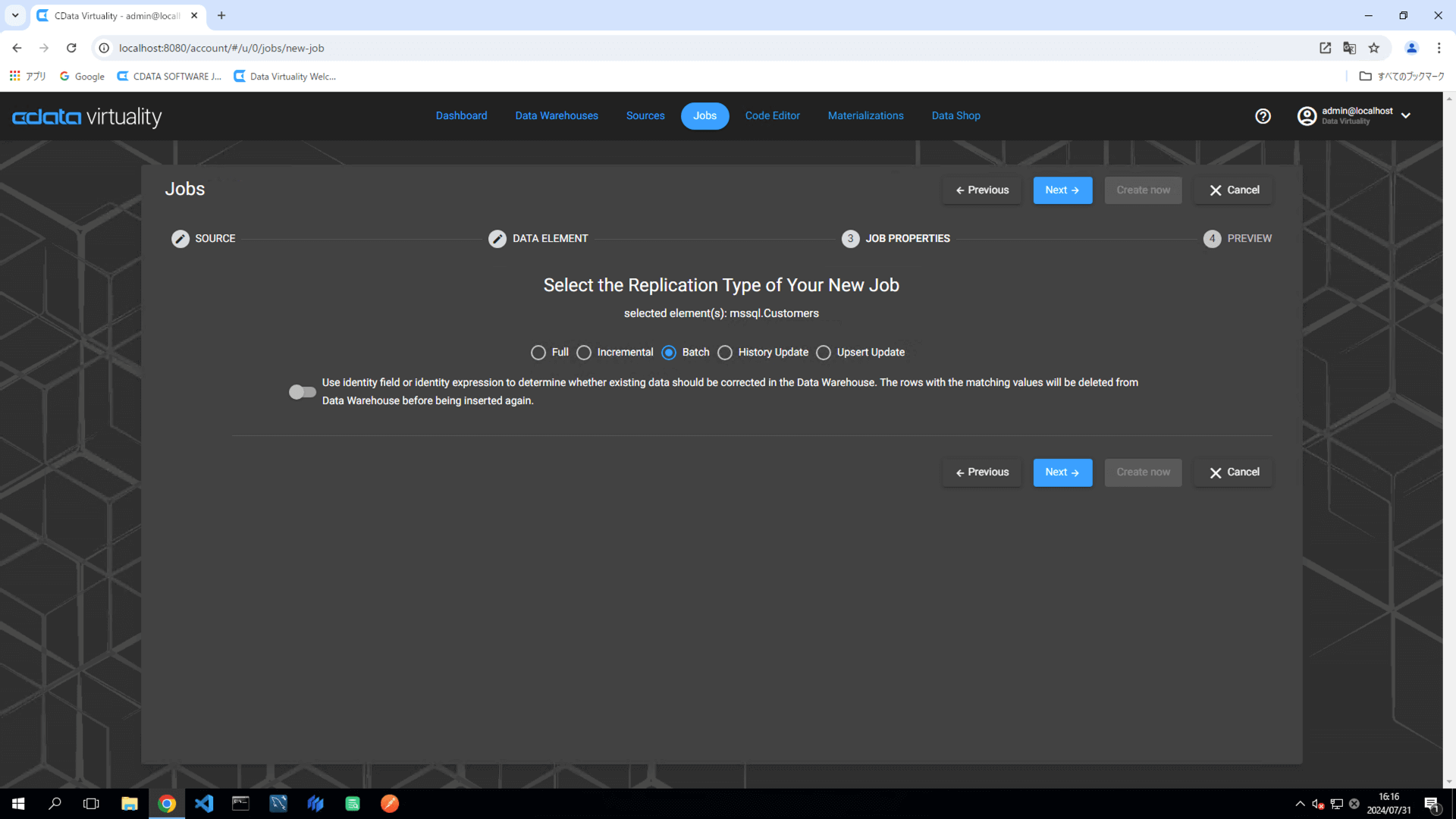 Batch (batch update): Updates existing tables in the data warehouse each time the replication job is executed.
