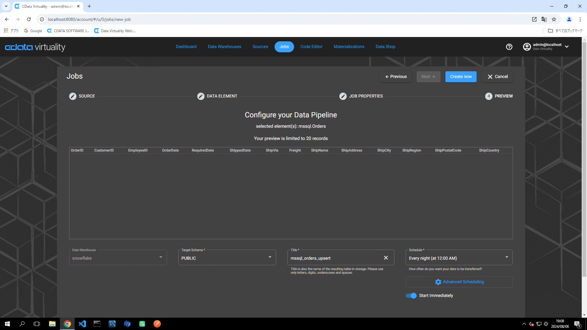 mssql_orders_upsert.Schedule: Set the desired execution schedule.