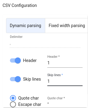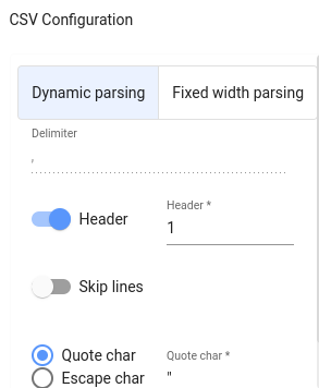To have CSV data correctly mapped to a table, use the parsing pane to specify the parameters that determine how to parse the data and create the table based on it. The most frequent settings here are: