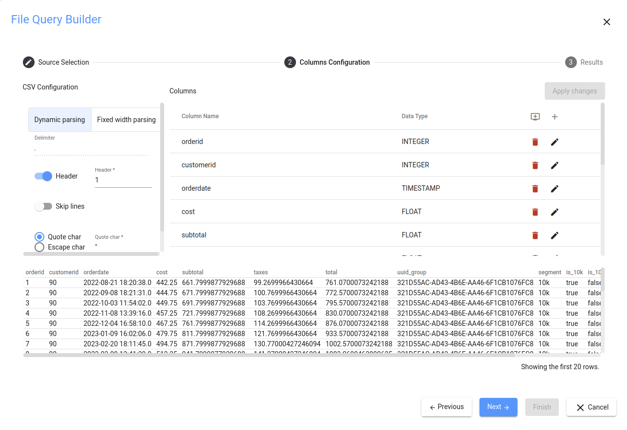 Using the Query Builder to Import CSV Data