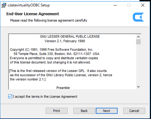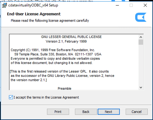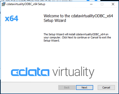 Once the CData Virtuality Server installation is complete, the ODBC Driver installer for 64-bit will launch: