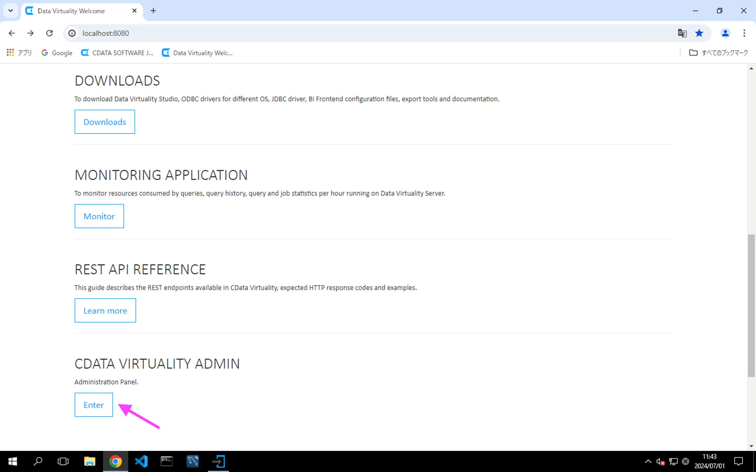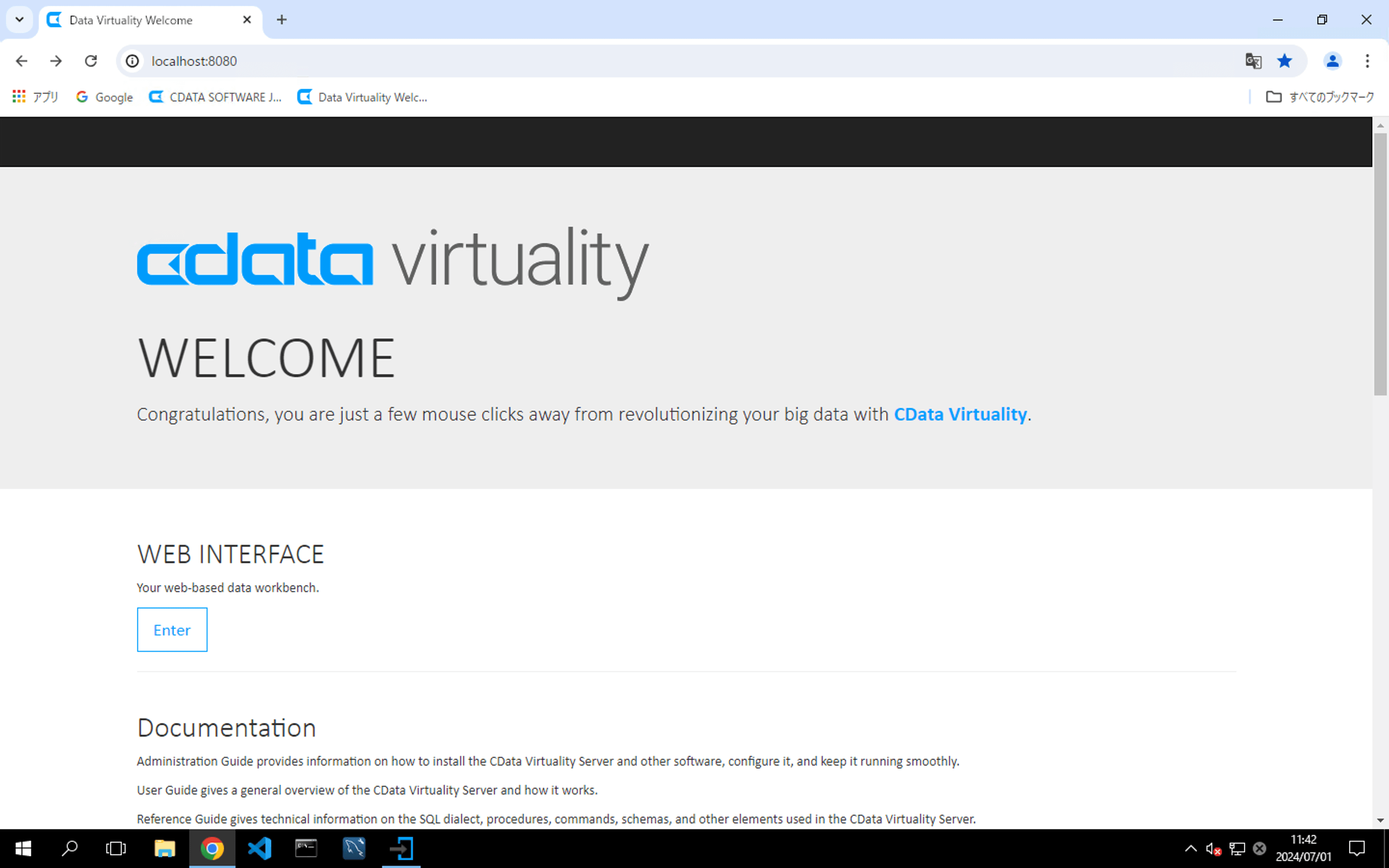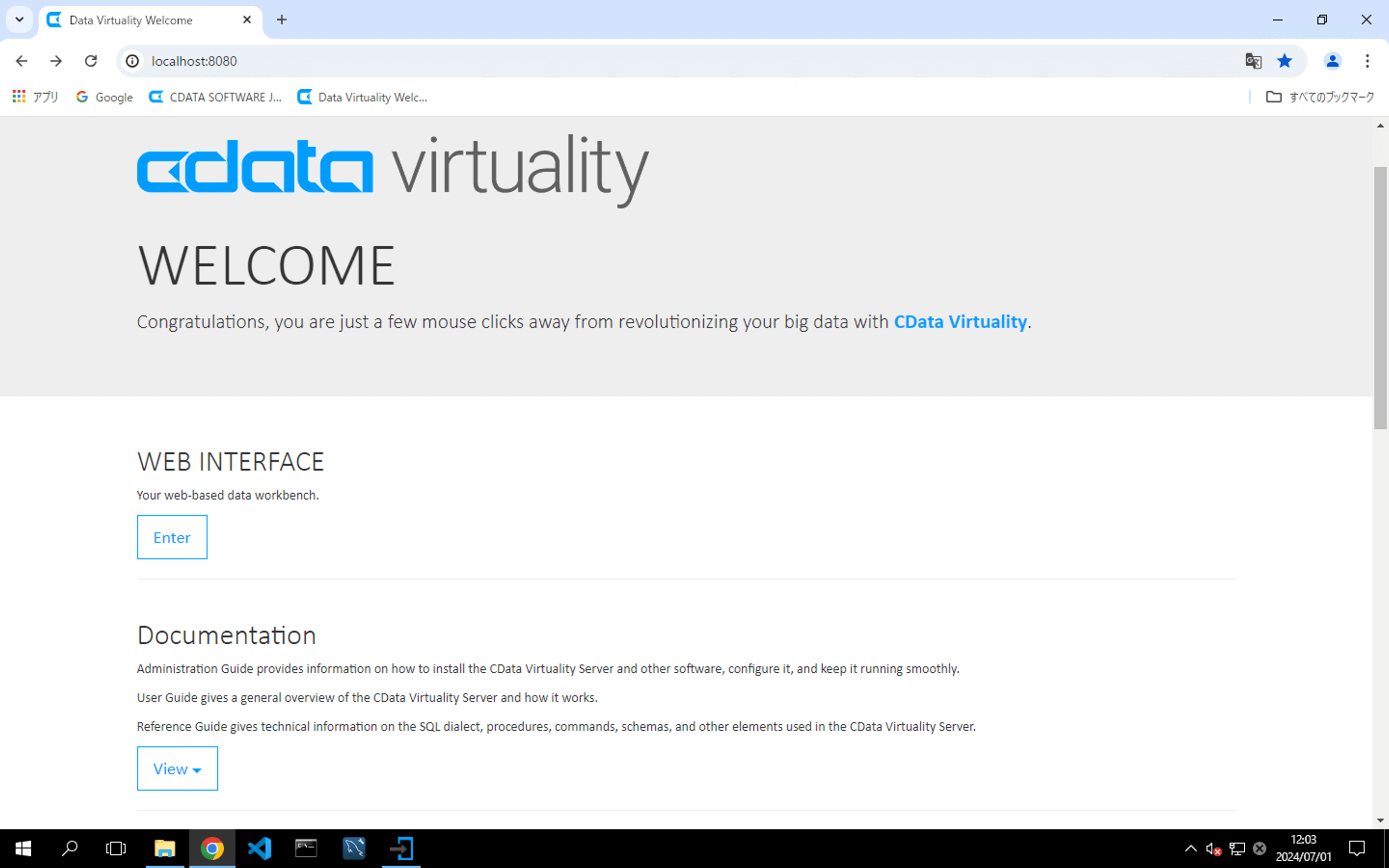 On the WELCOME screen, click CDATA VIRTUALITY ADMIN to begin the licence activation process:
