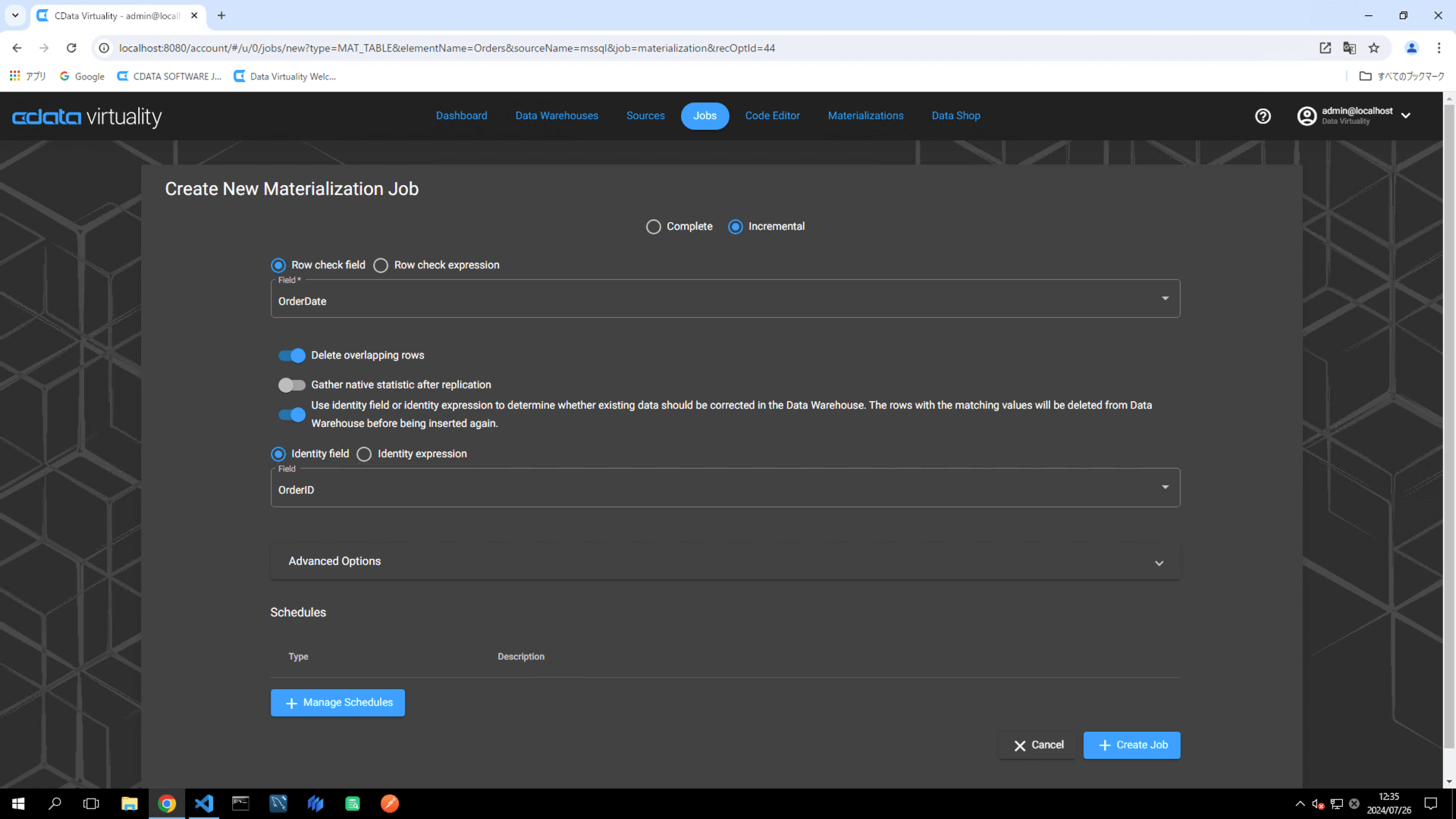 This section explains how to schedule a materialization run by creating a job. Both complete materialization jobs and incremental materialization jobs will be covered, detailing their configurations and execution.